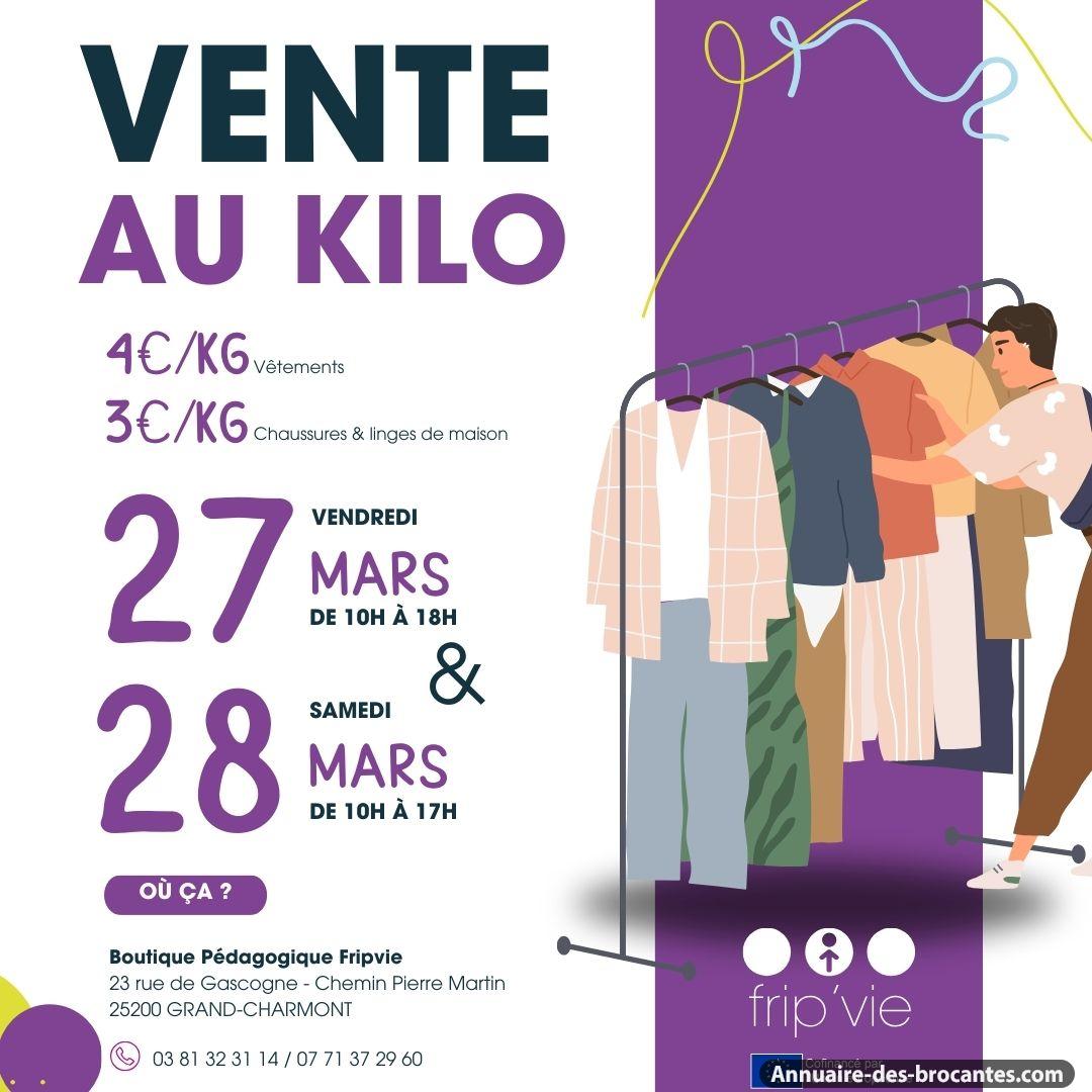 Stock énorme! Venez découvrir des articles uniques à des prix incroyables au kilo : vêtements à 4€/kg et chaussures & linge de maison à 3€/kg.