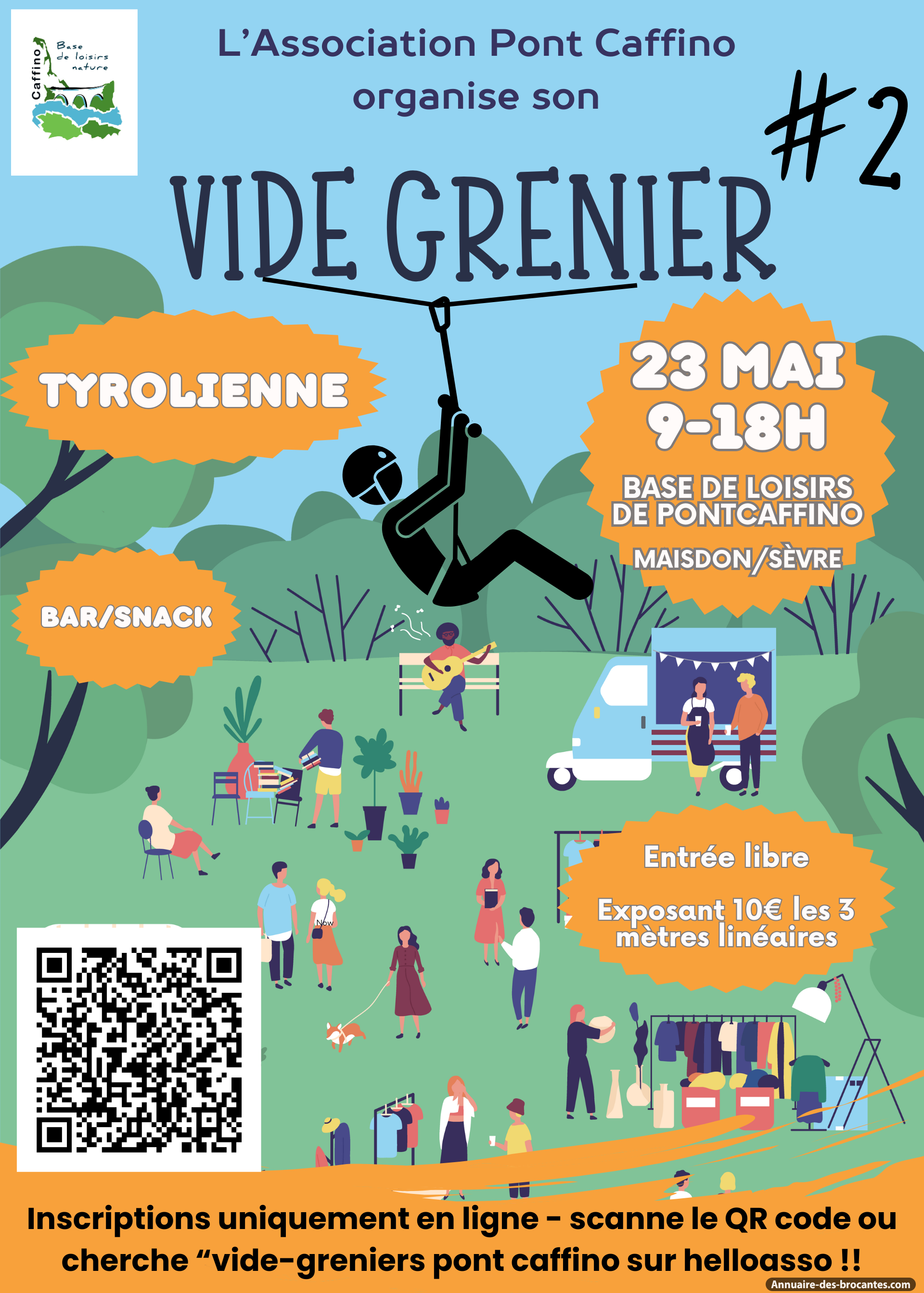 Samedi 23 mai, base de loisirs de pont caffino. Installation entre 7h00 et 9h00. Vous ne pourrez pas laisser votre véhicule à côté de votre stand. Le véhicule est autorisé pour charger et décharger votre stand uniquement. Des parkings exposant seront mis en place. Le départ est autorisé à partir de 16h00. Les emplacements sont vides, à vous de prévoir tables barnums … Bar restauration sur place. Animation tyrolienne