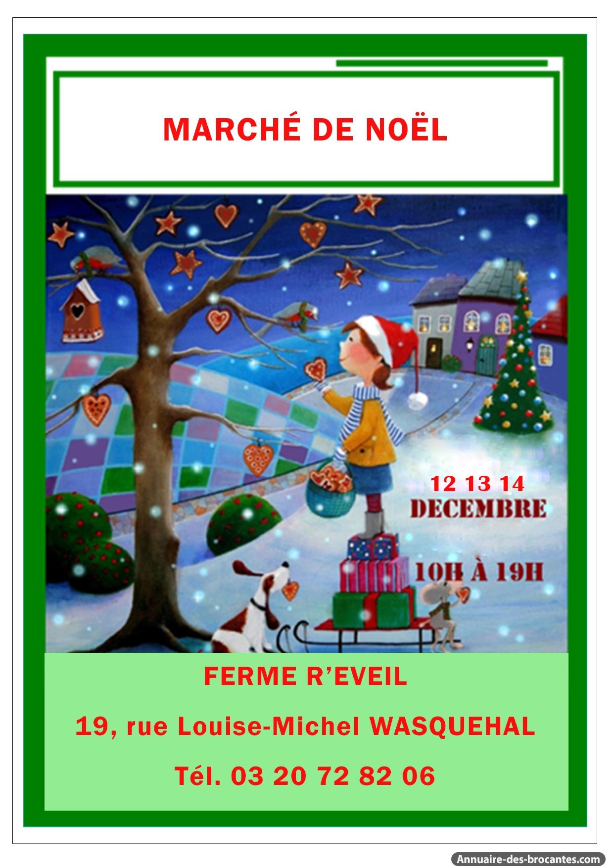 Exposants acceptés : les artisans, commerçants et l’association vous accueilleront autour de nombreuses spécialités : Couronnes de porte, décorations de table, tout pour la décoration, crèches, objets artisanaux, produits régionaux, chocolats, miel, pain d’épice, saucisson, bières... Il y aura également des jeux en bois, artisanat du monde, bijoux fantaisie, articles bien-être, bio et recyclés ... tout un ensemble de cadeaux uniques et originaux. Les acheteurs et visiteurs découvriront un lieu atypique; une ferme ancienne rénovée, au cœur de ville, et profiter de belles opportunités d’achats de Noël, Diverses animations pour petits et grands permettront de passer un agréable moment en famille ou entre amis (crèche géante, décoration, surprises…) L’association R’éveil organise ce Marché « Noël à la ferme » pour partager la magie de Noël, faire connaitre nos actions et proposer une animation pour les riverains. Les bénéfices éventuels seront dédiés exclusivement au confort et au bien–être des cérébrolésés.