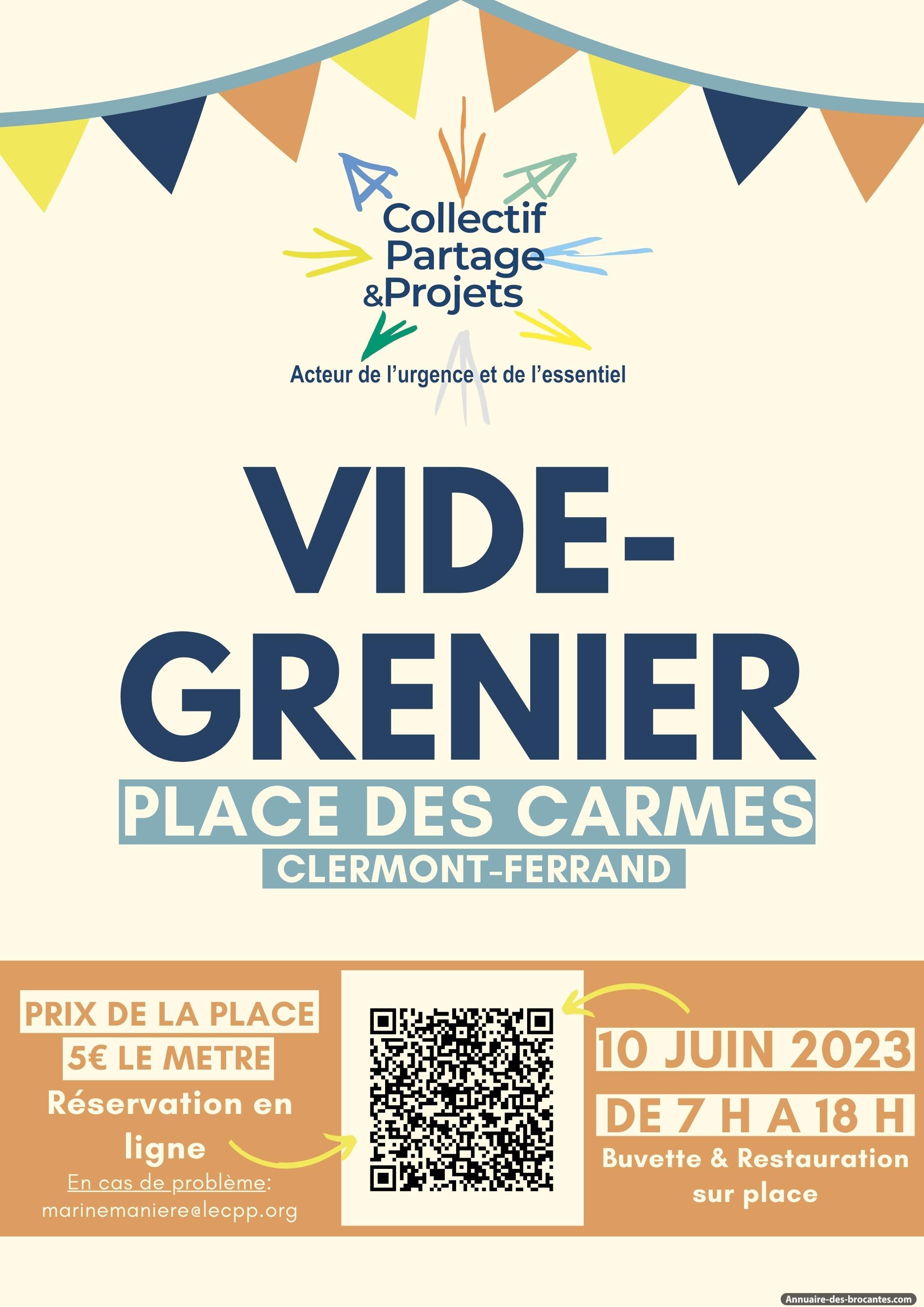 Le collectif partage et projets organise un vide-grenier sur la place des carmes à clermont-ferrand le 10 juin 2023.